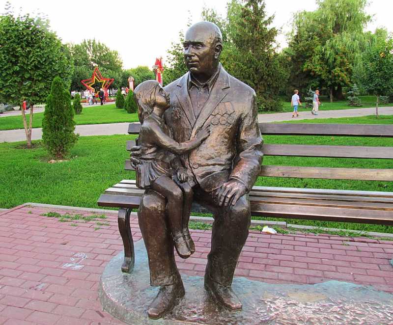 К 65-й годовщине Победы в Великой Отечественной войне в парке Победы был установлен оригинальный памятник : бронзовый ветеран с маленькой девочкой на руках сидит на скамейке. Памятник выполнен в человеческий рост и без постамента, поэтому любой желающий может посидеть на бронзовой скамейке вместе с ветераном. Моделью для памятника скульптору В. Кулаеву послужил тамбовчанин Иван Степанович Одарченко.