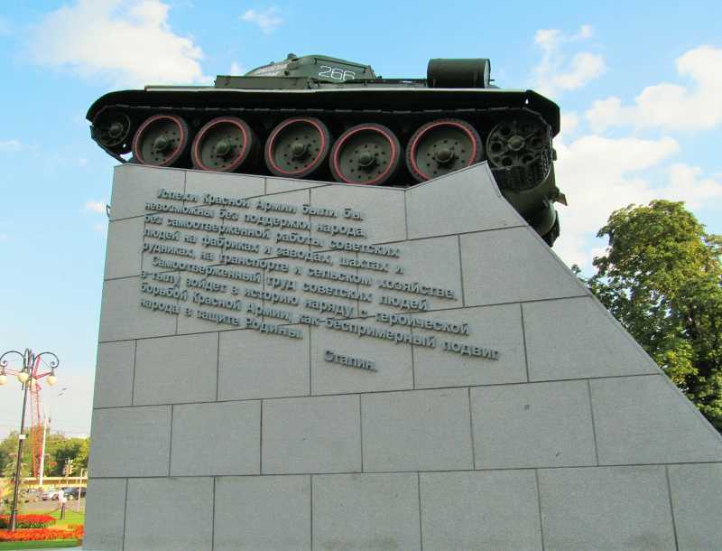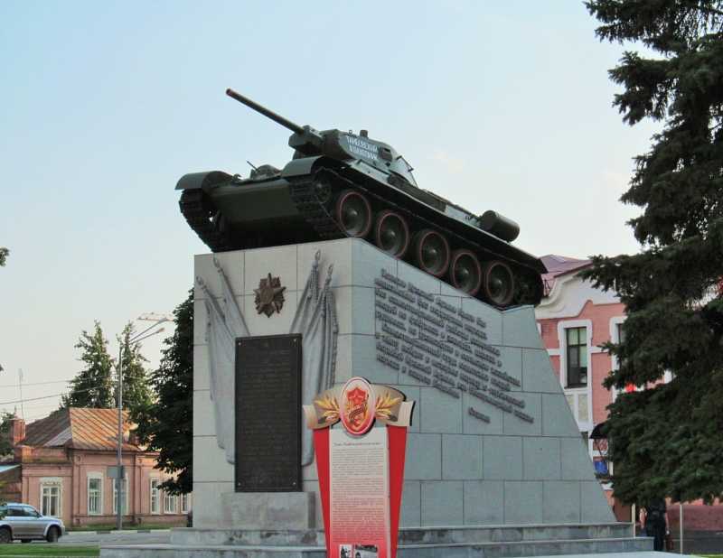 Этот памятник, называемый в народе просто «Танк», расположен на углу улиц Московской и Советской. Он установлен в 1949 году в память о проявленной инициативе местных жителей по сбору средств, которые пошли на закупку вооружения для Советской Красной Армии в годы ВОВ.