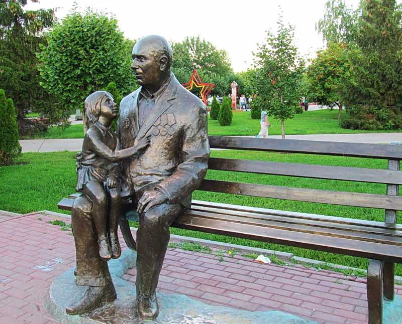 К 65-й годовщине Победы в Великой Отечественной войне в парке Победы был установлен оригинальный памятник : бронзовый ветеран с маленькой девочкой на руках сидит на скамейке. Памятник выполнен в человеческий рост и без постамента, поэтому любой желающий может посидеть на бронзовой скамейке вместе с ветераном. Моделью для памятника скульптору В. Кулаеву послужил тамбовчанин Иван Степанович Одарченко.